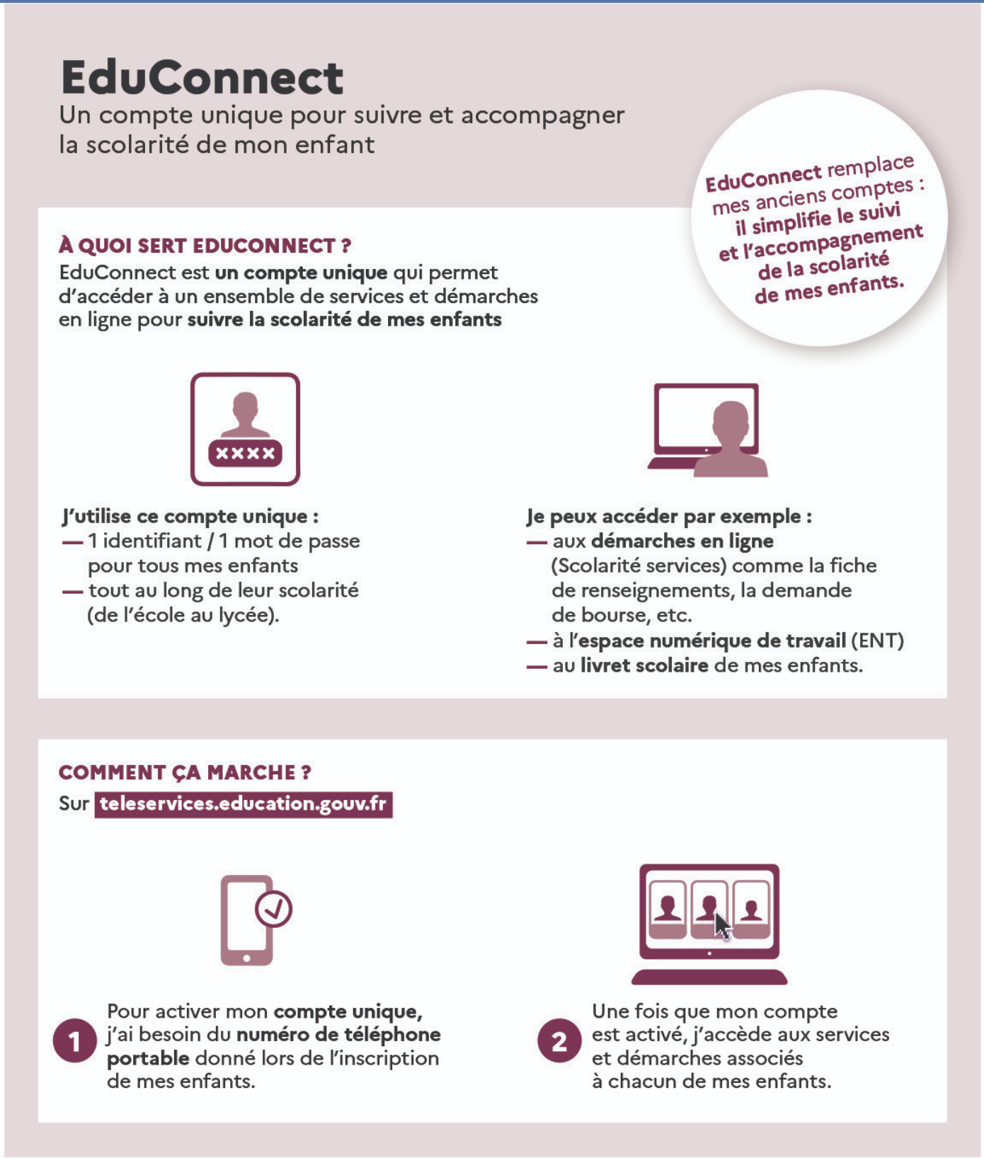 Les identifiants et mots de passe sont les mêmes pour toute la scolarité de vos enfants.